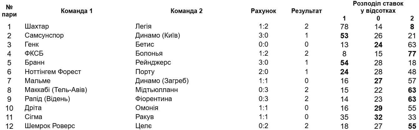 Поряд із єдиною сенсацією, якою б гучною вона не була, маємо відразу шість результатів із показником "угадуваності" понад 50%. Але зірвати джекпот це не допомогло, хоча один прогнозист наблизився до головного виграшу майже впритул. Він вгадав "11" і виграв 7353 грн, тоді як 18 учасників, що влучили в "десятку", заробили по 510 грн.