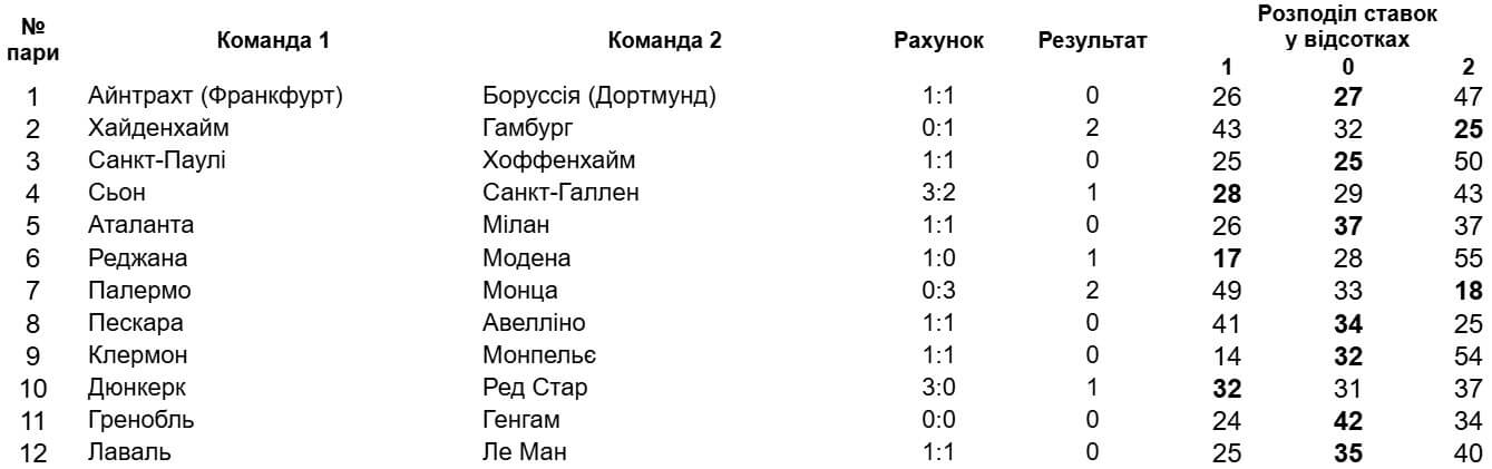 Загалом у тиражі було сім нічиїх, серед яких дві - у Кубку Німеччини. Але у кубкових матчах обов'язково треба визначити переможця, відтак справа дійшла до серії пенальті. Тут більше пощастило дортмундській "Боруссії" і "Санкт-Паулі", які пробилися до 1/8 фіналу.