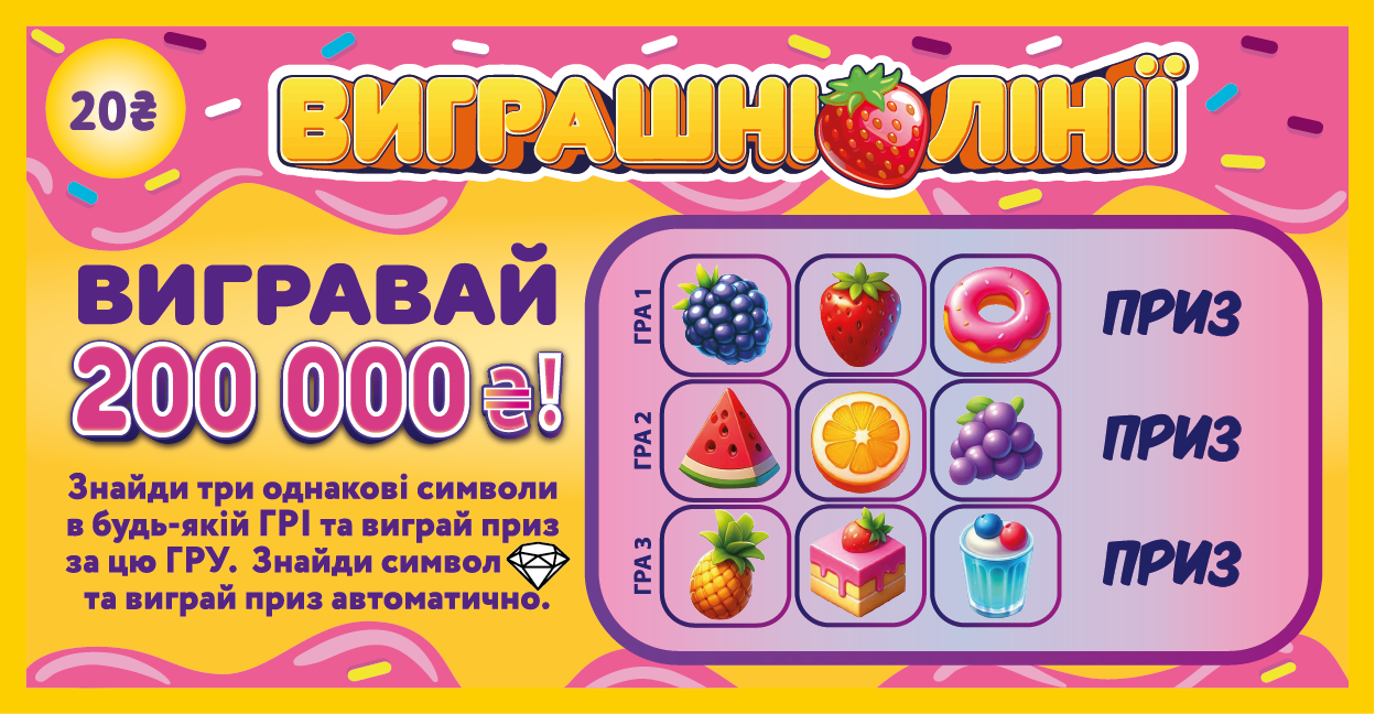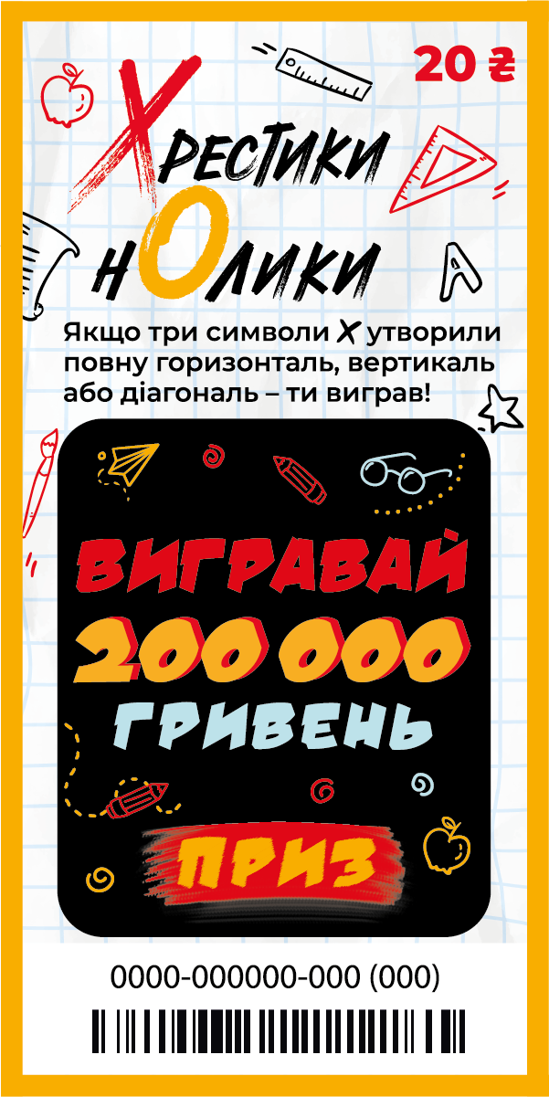* Кількість лотерейних білетів в серії – 2 000 000 штук. Виграші до 100 ₴ включно зазначаються на лотерейних білетах за вирахуванням податків та зборів.